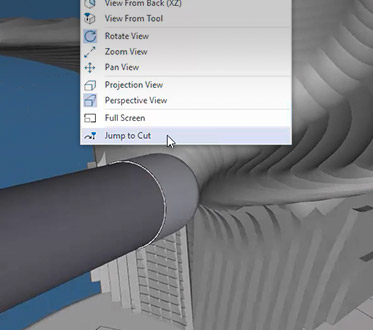Spot a gouge? Just right-click the affected area of the stock model and immediately see how the tool interacted with the part at that moment in time. With Jump to Cut, you get direct navigation, instant context, and clear insight — without wasting time scrolling through the timeline.