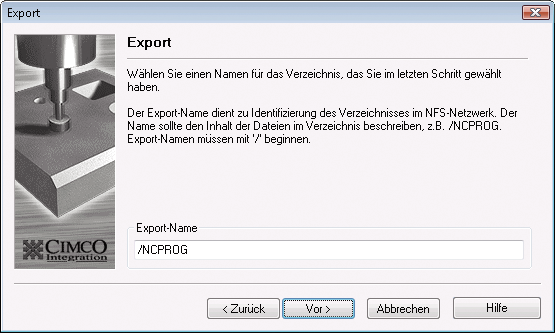 Hier wählen Sie einen Export-Namen. Dieser Name sollte aussagekräftig sein (z.B./NCPROG) und gleichzeitig einzigartig im Netzwerk (Sie können nicht für zwei Konfigurationen den gleichen Export-Namen verwenden).