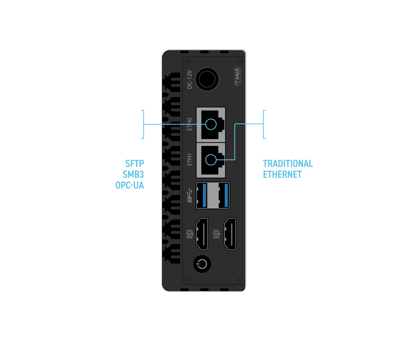 Compatible with SMB1/3, FTP, NFS, MT-Connect, Fanuc FOCAS, Siemens S7, Heidenhain LSV2, HAAS NGC/M-NET, and Modbus TCP.